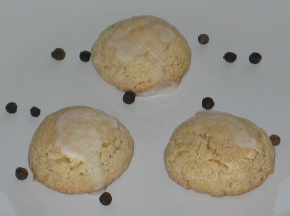 Nach dem Abkühlen eine Glasur aus Zitronensaft und Puderzucker herstellen und die Pfeffernüssen damit bepinseln.