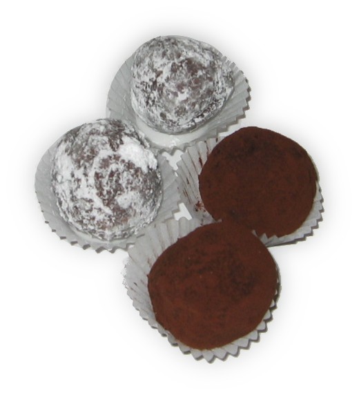 Aus der Masse ca. 20 Kugeln herstellen und zum fest werden in den Kühlschrank stellen. Den restlichen Puderzucker sowie das Kakaopulver auf jeweils in eine Schüssel geben und je eine Hälfte der Kugeln im Puderzucker bzw. im Kakao rollen. Danach wieder im Kühlschrank aufbewahren.