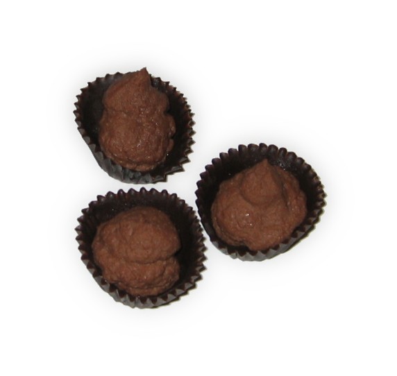20 Pralinenförmchen dünn mit Schokolade (100g) ausstreichen und für einige Minuten in den Kühlschrank stellen, bis die Schokolade fest ist. So oft wiederholen bis die Schokoladenschicht dick genug ist. Danach die Schokolade richtig fest werden lassen und die Pralinenförmchen ablösen.